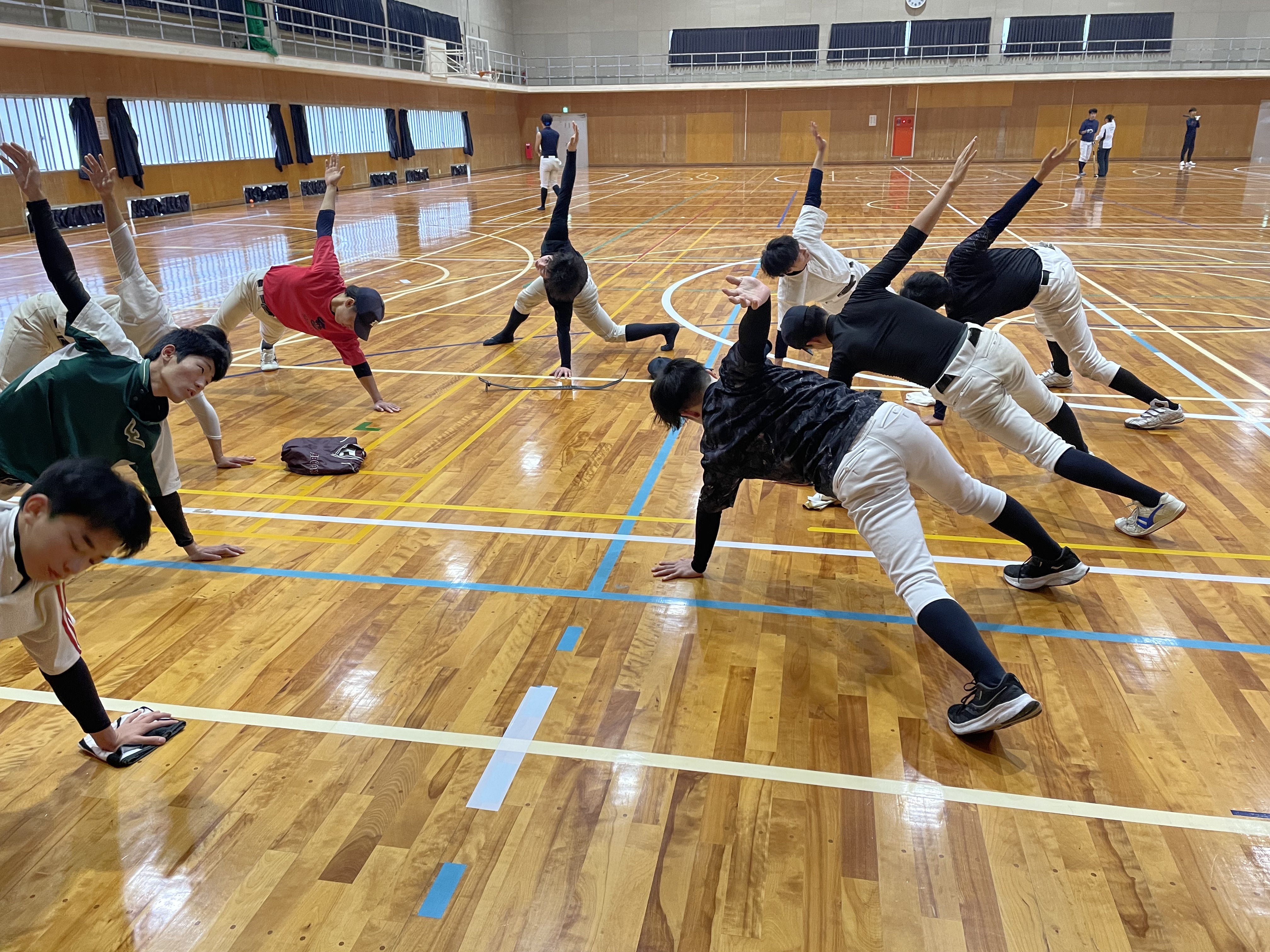 沖縄合宿2日目 kyodaijunko 2024年2月9日 コメントはありません Tweet 沖縄合宿2日目の様子をお伝えします。 午前中は悪天候のため、体育館にての練習でした。体幹やウエイトなど体作りをメインに行いました。 午後は天候も回復し、グラウンドにて練習することができました。ノック、バッティングなど有意義な練習となりました。